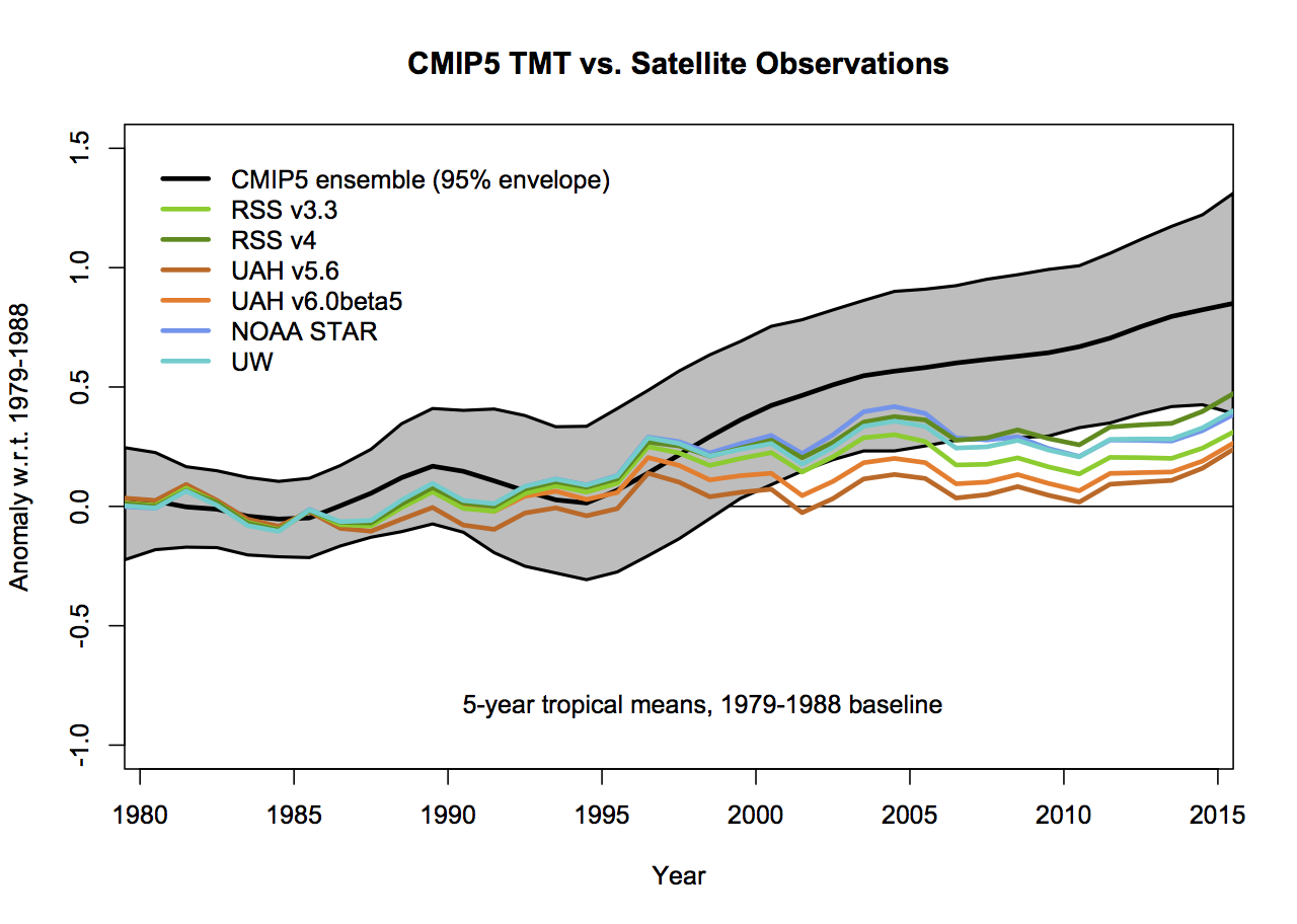 Still problematic because the satellites have the coverage that surface measurements don’t including much of the Arctic region e.g. the Schmidt and Christy graphs in the post. The surface disparity that JPL’s Richardson et al is addressing began way back in the 1860s (apparently), but the major disparity between temperature derived from NASA’s own satellites and the models only began in the mid 1990s. Same at the surface although the divergence began after ab out 1985.