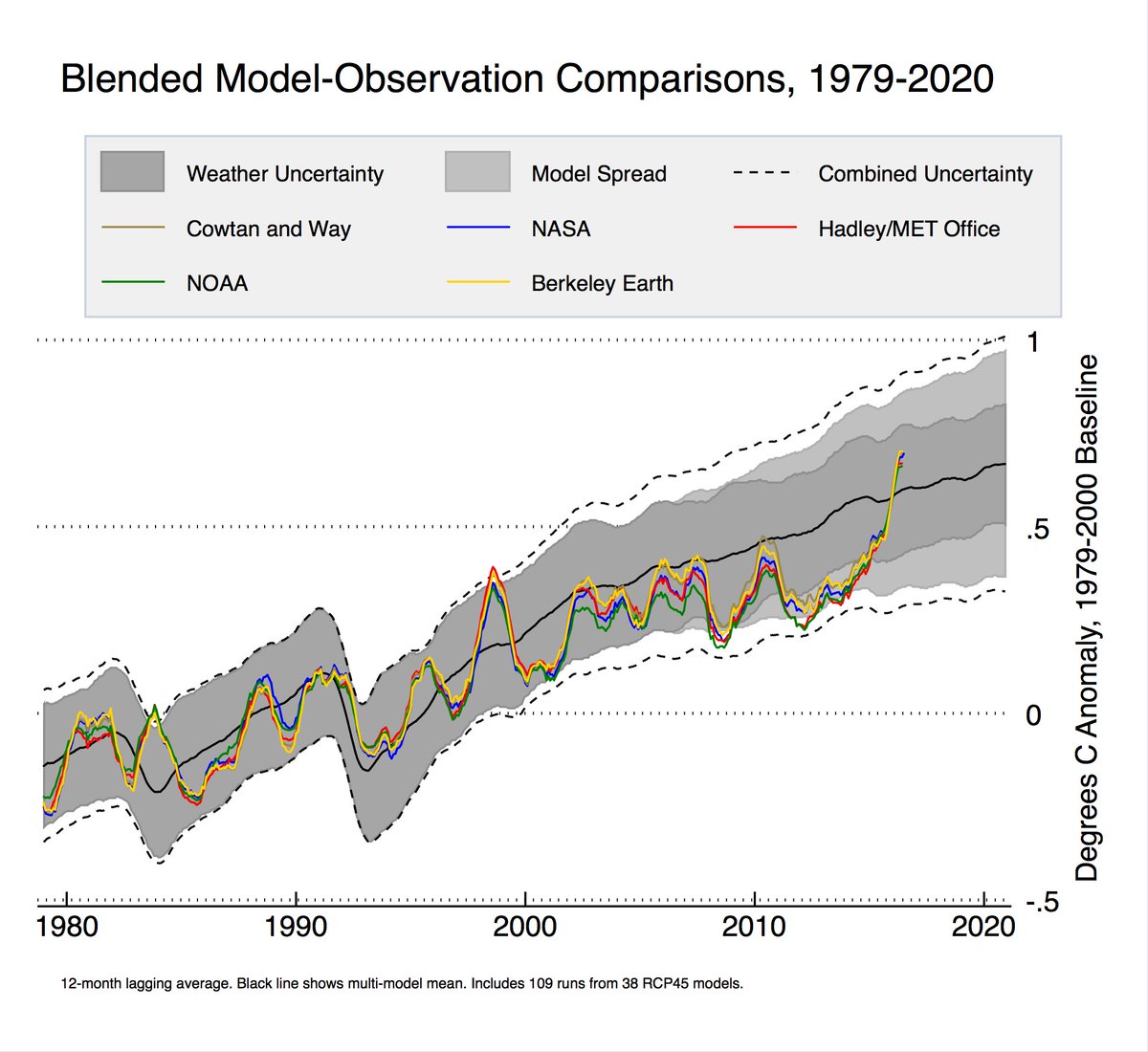 Could you discuss the post, please? It makes a not unreasonable point about overheating models getting further away from observations.